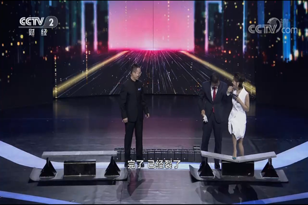 去年央視《創業英雄會》來西安選人,今年810日,鄧明科團隊去北京錄制節目,節目109日播出。節目現場,鄧明科準備了一塊普通混凝土板、一塊高延性混凝土板和500公斤的砝碼,進行了加載對比實驗。