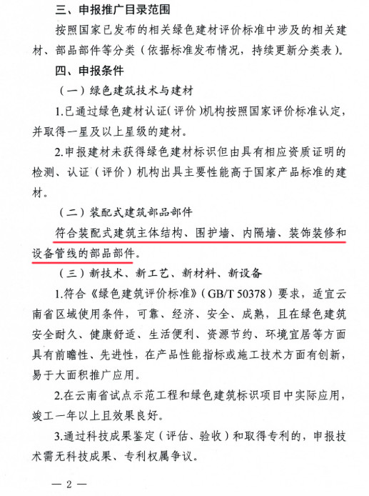 2020年3月17日,云南省住房和城鄉(xiāng)建設(shè)廳關(guān)于印發(fā)《開(kāi)展綠色裝配式建筑四新技術(shù)與建材推廣目錄申報(bào)工作》的通知,內(nèi)容強(qiáng)調(diào):